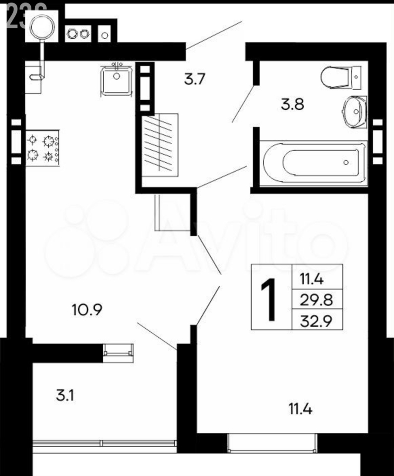32,9 м²