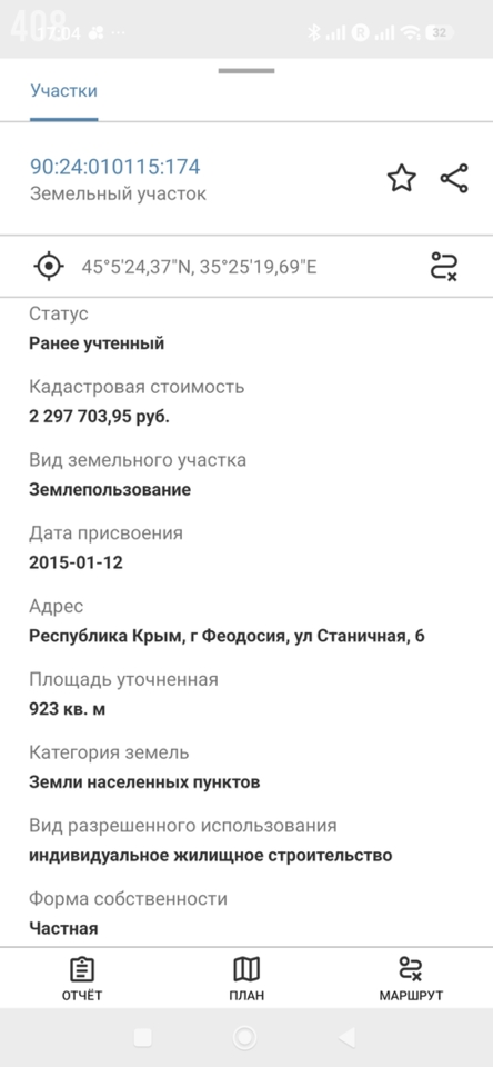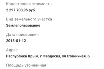 Площадь участка :