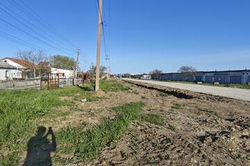 Все коммуникации по границе ,канализация заводится в посёлок.